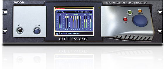 The 8500’s proven, competitive sound makes it the ideal choice for FM stations simultaneously transmitting iBiquity’s HD Radio®, DAB, DRM or a netcast. With double the DSP power of the 8400, the 8500 supports many features, such as 20 kHz bandwidth on HD processing channel, window-gated dual-band AGC, stereo enhancement, parametric EQ, large color LCD, advanced processing controls and an Orban-exclusive baseband processor providing all the advantages of composite clipping without the usual degradation of stereo or RDS/RBDS coverage. The 8500 also has versatile five-band and two-band processing for both analog transmission and digital radio, the 8500 provides the industry’s most consistent sound, track-to-track and source-to-source. Digital I/O included (2). Sample rates automatically selected for AES/EBU input and digital sync input: 32, 44.1 and 48 kHz. Inputs: AES/EBU, digital sync and electronically balanced stereo analog (XLR). Two SCA inputs (BNC). Output sample rates selected in software: 32, 44.1, 48, 88.1 and 96 kHz. Outputs: AES/EBU (2), electronically balanced and floating stereo analog (XLR). Two stereo encoder composite outputs (BNC). Remote control interface (DB25), two RS-232 interfaces (DB9). Pre-em- phasis 50µs or 75µs. 3RU. 28 lb/12.7kg. (HD Radio™ is a registered trademark of iBiquity, Inc.).