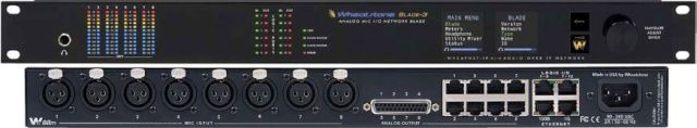 Standalone Input / Output router with 8 mono microphone inputs and 4 stereo analog outputs (8 mono). Interface via DB-25 or RJ-45 connections. 12 assignable GPIO logic ports. Web Browser configuration interface. Network multiple I/O Blades through gigabit Ethernet switch.