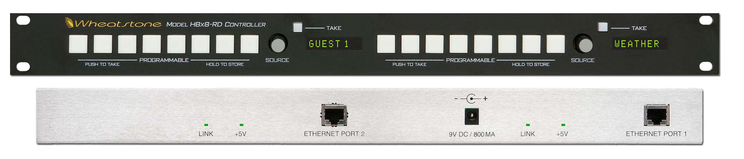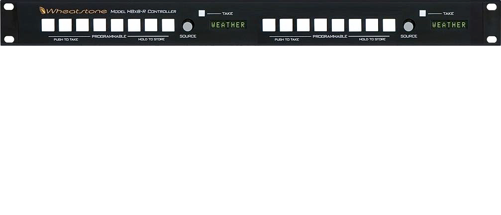 Single rack unit Ethernet based X controller for the WheatNet-IP Audio Network. Each section has 8 buttons that can be front panel programmed with your most popular sources for quick recall. Also contains rotary encoder and display to access the other available sources.