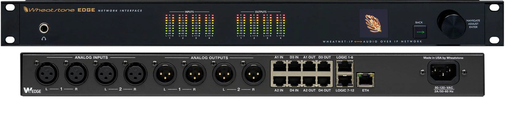 Network EDGE Blade. Designed as a translator between high-quality, low-latency studio networks such as WheatNet-IP and low-bandwidth STL connectivity options such as IP wireless radios. 2 stereo analog inputs (4 mono), 2 AES-3 digital inputs and 2 stereo analog outputs (4 mono), 2 AES-3 digital outputs. 12 assignable GPIO logic ports.